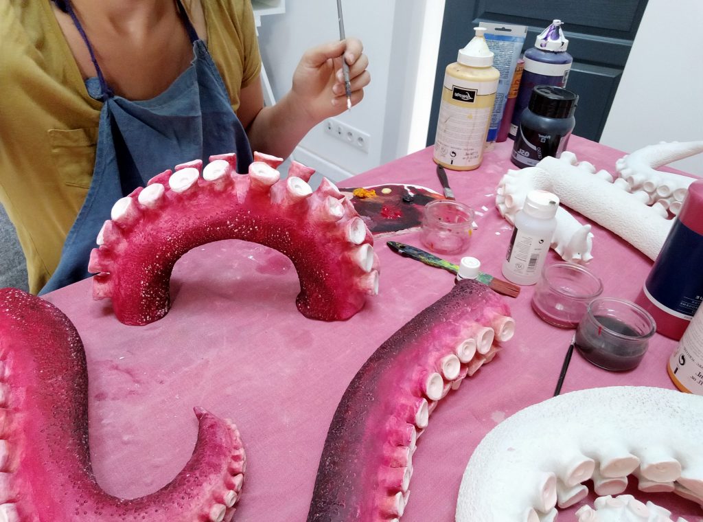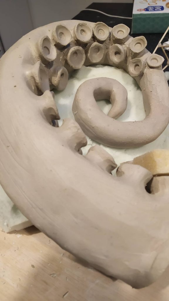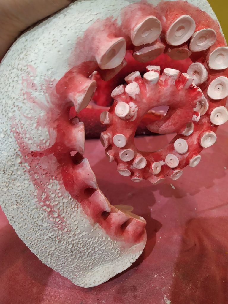 Le poulpe est un animal fascinant d’intelligence et de capacité d’adaptation, de mimétisme, de stratégie. Doté de 2000 ventouses, plusieurs cerveaux et cœurs, capable de régénérer ces bras ou de s’amputer pour la procréation de son espèce. Il a resurgit dans mon travail lors du premier confinement.