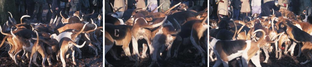 Récompense est un dialogue entre deux groupes de cors de chasse et les aboiements de la meute de chiens avide, excitée par la promesse de viande fraîche.